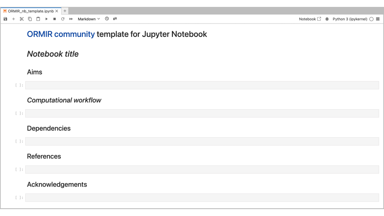 Just as you download and complete a journal template when writing a paper, you can download the templates you need and adapt them to your code, data, and documentation